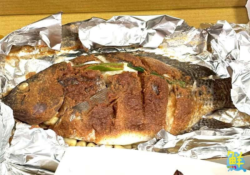▲烤吳郭魚(胡椒口味):體型龐大、重達近三斤,有胡椒與破布子兩種口味,魚肚內滿滿蒜頭,外皮撒上滿滿胡椒,每口魚肉香辣入味,愛重口味的朋友別錯過!