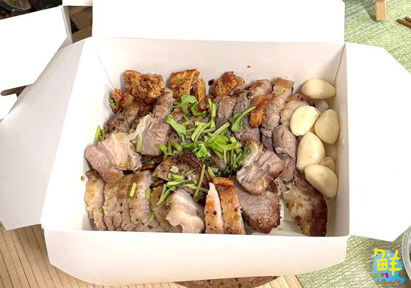 ▲脆皮五花肉:皮超脆、肉嫩到不可思議!加上洋蔥、蒜頭和香菜,讓風味更上層樓!