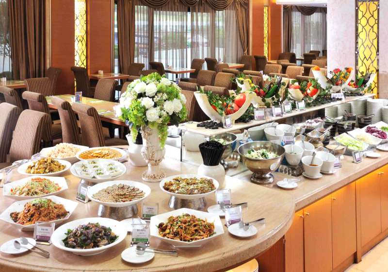 粵式主廚嚴選雙人餐內含金華海鮮炒飯、香菜龍膽魚片湯、蠔油芥蘭松阪豬、鮑魚燒賣皇、芋頭西米露等道料理,日式精選主菜美國無骨牛小排壽喜陶板燒或台灣黑豬梅花肉、綜合生魚片或鹽烤鯖魚、炸雞肉唐揚、黑松露茶碗蒸、當日手作甜品,義式匯集前菜特製凱薩田園沙拉、今日主廚濃湯、主菜卡普列滋燉飯、和風明太子墨魚鮮蝦披薩、特製甜點等佳餚。