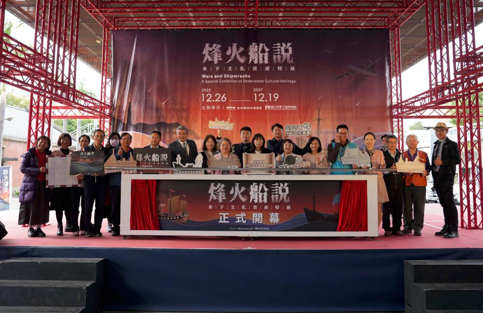 文化部文化資產局與高雄科工館合辦《烽火船說水下文化資產特展》1月16日至12月19日週二至週日上午9點至下午5點(週一、大年初一休館),巡迴台中市文化資產園區R08水下文資展示館邀賞,文資局副局長林尚瑛、科工館館長李秀鳳等人參與開幕式,聚焦戰爭與沉船,規劃臺灣海洋戰爭史、臺灣沉船故事、烽火記憶戰爭沉船文物、守護與永續等4大主題區,展品包括文資局出借台中場限定船體構件、子彈、望遠鏡、瓷盤、錢幣等20件沉船文物,現場還有結合射擊遊戲沉浸式劇場「烽火船說之海空對決」,模擬船艦遭空襲沉沒情境,營造身歷其境感官氛圍,另「踏尋海上烽火」地面投影互動裝置,透過金門料羅灣、安平、澎湖、基隆、淡水、台中、高雄等地7段影片,重現明清至二戰時期臺台灣沿海關鍵海戰,台灣沉船故事展區蒐錄8處沉船遺址,觀展並上網填寫問卷可兌換小禮一份。圖/科工館提供、文/高培德
