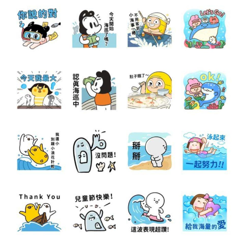 海洋委員會攜手囂搞、啾啾妹by LIIN、狗與鹿、wei wei boy、晴天P莉、昀子、i-yaya(哎鴨鴨)、33original、檸檬酸姐姐、Congratulafins、寶寶不說、陳又凌、布籽生物、吉文考古、三角貓工作室、ㄈㄈ CetaCea等台灣16名插畫家合推「讓我們LINE在海洋」社群貼圖,首波海洋兒童節結合日常用語與海洋創意,並加入海委會「今天開始海巡了嗎?」、「認真海巡中」、「這波表現超讚」,即日起至4月23日免費下載,3月28日下午2點30分台北西門紅樓北廣場舉行發布會暨粉絲見面會,i-yaya(哎鴨鴨)、昀子、寶寶不說、wei wei boy、33_original、吉文考古等插畫家現身互動,吉祥物「啾啾妹」、「可愛大王」陪伴同樂,限量紀念品等你帶回家。圖/海委會提供、文/高培德
