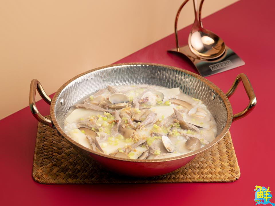 除了翠園的經典港式粥品外,人氣片皮鴨專賣店「上菜」則是將美味片鴨料理延伸出暖心又暖胃的「海味雜炊鴨絲泡飯」,以鮮甜鴨架高湯為底,將鴨肉去除多餘肥油後切絲,加入蝦米、蛤蠣小火燜煮,最後加入白飯充分吸收鴨肉與海鮮的鮮甜,米粒吸飽湯汁精華卻不失口感,口口溫潤飽滿,讓食客在品嚐烤鴨之餘,也能感受一碗熱粥帶來的溫暖滋味,是2吃、3吃料理中不能錯過的美味!