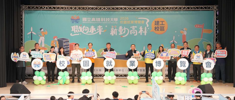 國立高雄科技大學校友中心2026校園就業博覽會「職向未來・新動高科」第二場3月25日移師建工校區中正堂舉行, 邀集台積電、聯電、日月光、華邦電、世界先進、鴻海、中華工程、遠雄營造、台灣世曦工程等逾百家企業,釋出研發、製程、設備工程、人工智慧(AI)應用等5675個職缺,高科大副校長李慶章說,學校長期深化產學合作與實務教學,協助學生接軌職場,強化競爭力,高科大校友總會秘書長林三郎說,活動體現學校育才成果,勞動部高屏澎東分署分署長郭耿華說,中央續推青年就業促進對接產學,協助青年穩定就業及發展多元職涯,高市勞工局訓練就業中心副主任羅永新肯定高科大育才成果,也勉勵青年把握機會,覓得理想工作。現場同步提供履歷健診、職涯諮詢等服務,提升求職媒合率。圖/高科大提供、文/高培德