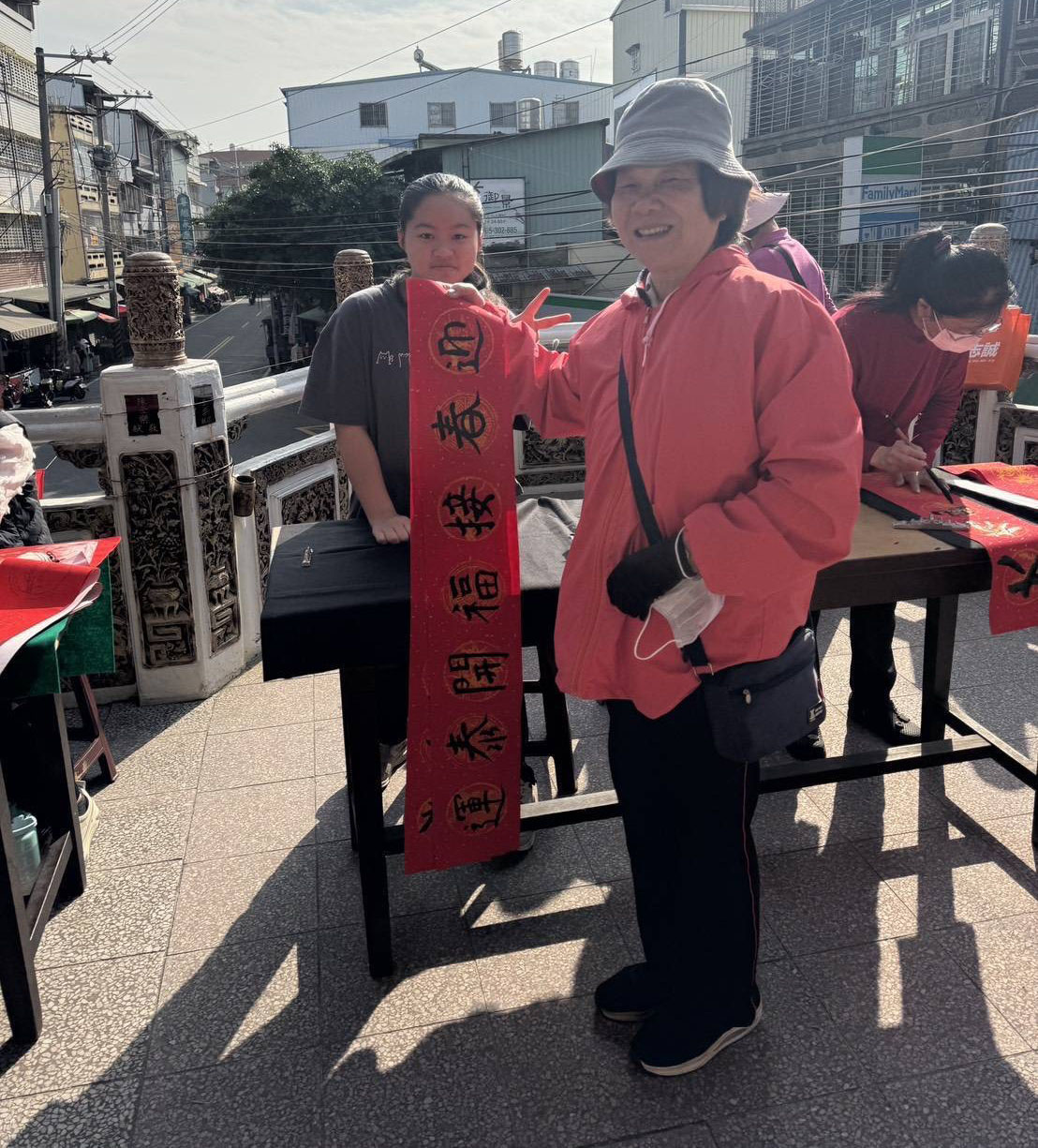 家長李潓即興創作「金馬迎春鑫鼓舞、神駒納福垚聚財、燕中師生品驥足、信徒滿載众暖心」祝福活動圓滿,巧妙融入馬年意象。圖/教育局提供、文/高培德