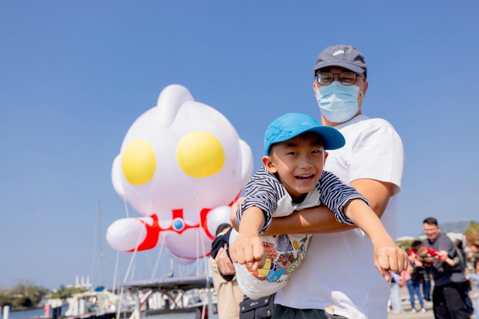 ▲高雄冬日遊樂園彩蛋8米Q版初代超人力霸王活動期間將不定期領航愛河灣。