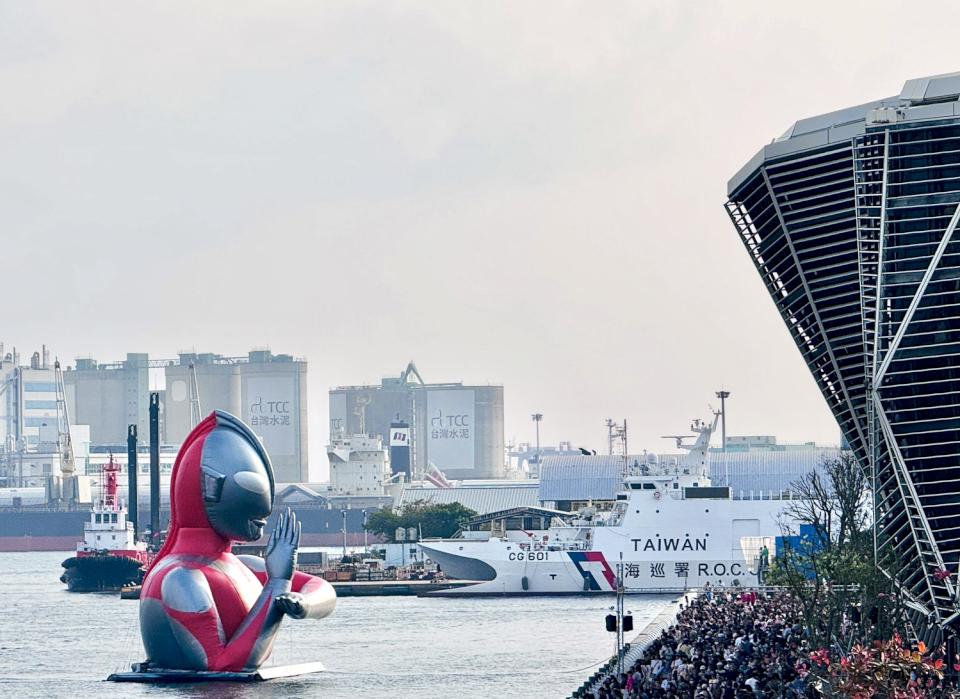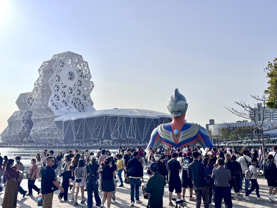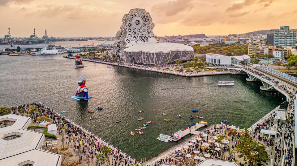▲超人力霸王降臨港都愛河灣,現場吸引滿滿人潮