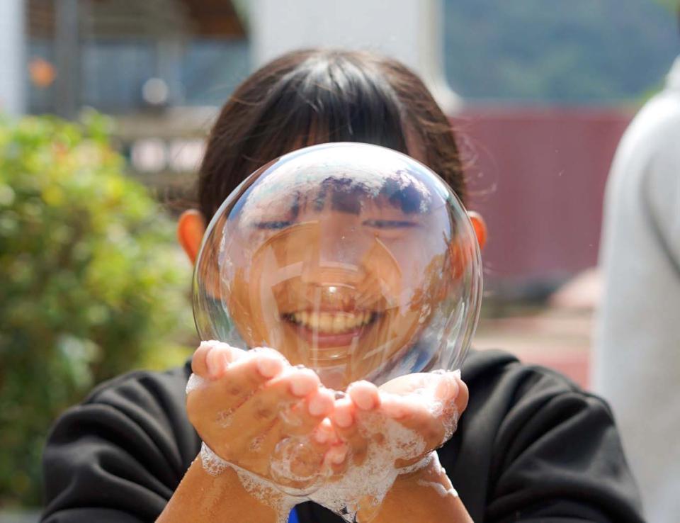 邱昭文說,高大科普團隊109 學年度首次前進桃源國小推廣科普教育,並獲國科會國際合作處經費挹注,透過設計國小專屬教案,引導配戴護目鏡、操作滴試管、量筒完成實驗,深獲學校、家長及社區肯定。