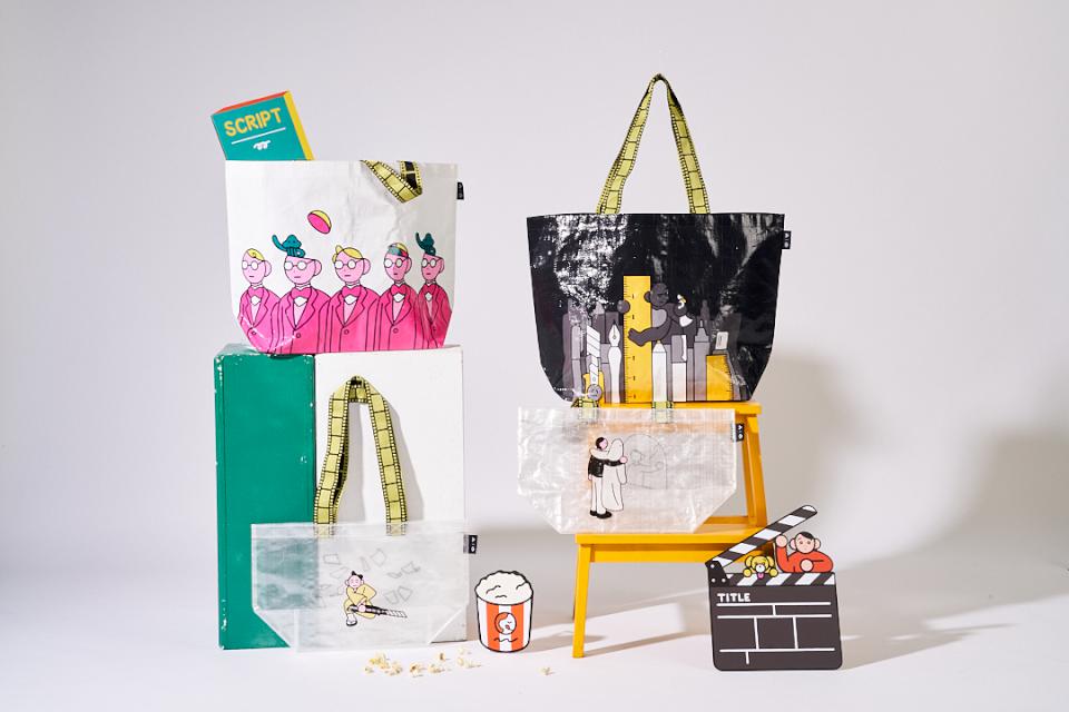 ▲【誠品限定】unpis購物袋,耐用PP材質配可愛電影場景及底片緹花織帶,文具戰利品一袋搞定