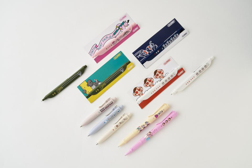 ▲【誠品限定】unpis聯名多款筆類品牌,如:LAMY safari 鋼珠筆、CLIPEN書夾鋼珠筆及uni-ball one P鋼珠筆等。