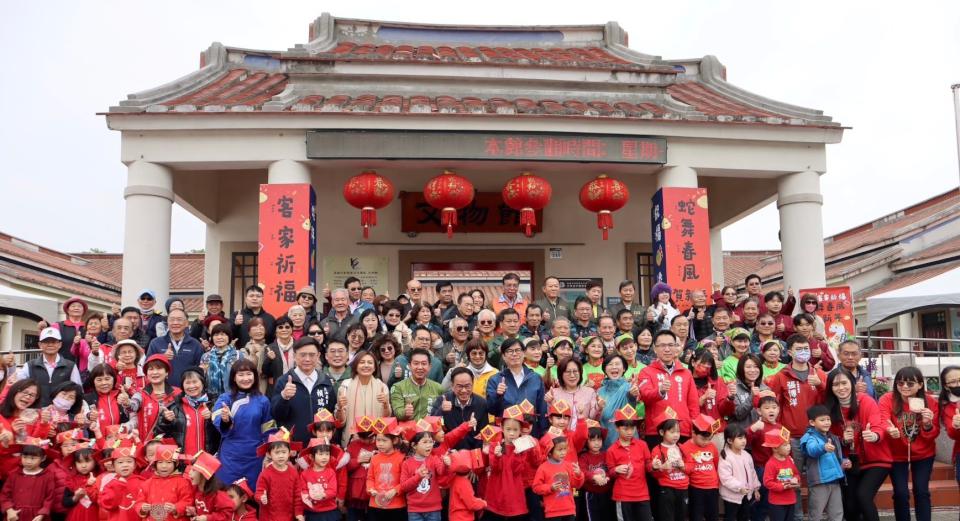 高雄市政府客委會表示,客家族群敬天地崇自然,素來有「春祈秋報」的文化,春天過年期間準備豐盛的祭品,向上蒼神明祈求新的一年平安順序,諸事圓滿。今天舉辦的客家新春祈福,遵循傳統客家「三獻禮」祭拜儀式,以客語誦讀祭文,搭配美濃客家八音演奏,並由火焰蟲非營利幼兒園帶來充滿年節喜氣的歌舞表演,讓現場民眾感受蛇年喜慶繽紛。三獻禮儀式後陳其邁市長率市府團隊發送開運紅包給現場民眾,民眾開心領紅包之餘,還能品嘗客家粄食,讓民眾吃粄吃福好運一整年。