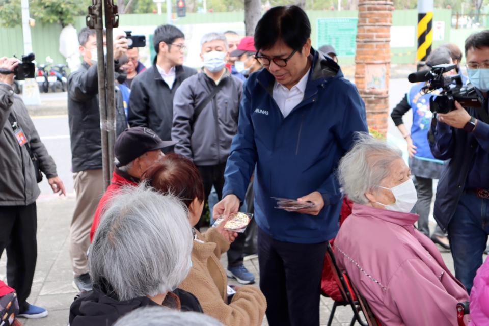 ▲市長發開運紅包給長照長輩,長輩樂開懷
