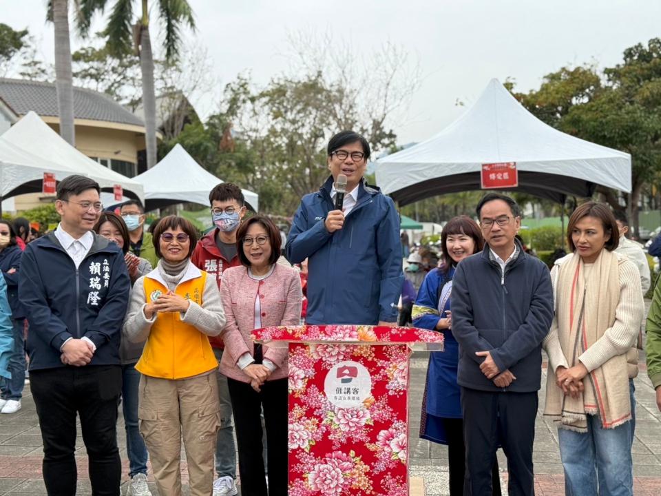 陳其邁市長表示感謝議會團隊和高雄立委支持客家活動及建設等經費預算,這幾年不管是盤花公園,美濃、鳳山、三民等區的客家空間改善與營造,美濃文化生態散步策生態維護等,市府與中央陸續投入3.3億元經費,很感謝所有客籍立委在立院幫忙與共同爭取,不管在客語認證、補助、相關客家文化保存,讓高市府能持續推動,並喊話立院能重視多元文化、別亂刪相關經費。