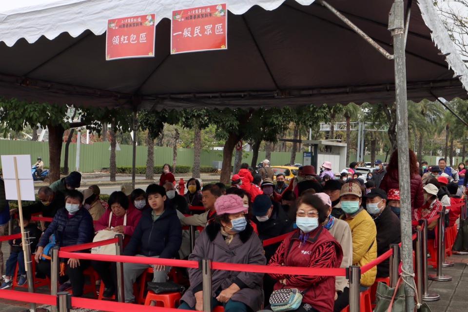 ▲民眾排隊領市府蛇年開運紅包