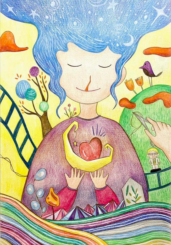 31歲平面設計工作者及插畫家王文千(圖一)受邀台灣美容外科醫學會秘書長葉麗靖創作《希望的宇宙》輾轉經國際白疤中心創辦人曹賜斌典藏,曹響應6月29日《2025致羅慧夫、傳承整形大愛》公益行動捐出畫作義賣,後由台北診所院長邱正宏得標再捐出,最終返還國際白疤中心傳為佳話。