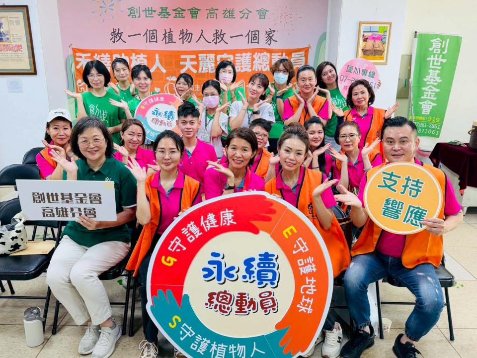 禾繕基金會秘書長回甄萭、天麗生技高雄分公司協理王有銓、活動總召吳采溱等人5月23日領軍20名志工現身創世基金會鳳山分院,透過視訊連線串連北中南三地企業志工,齊喊「天麗、禾繕總動員、用愛守護植物人」口號,回甄萭與王有銓也自掏腰包資助植物人尿布經費,號召同仁響應每月小額捐資嘉惠病友,創世基金會鳳山分院院長林瑪俐代表回贈感謝狀,創世鳳山分院安養65名植物人病友,每人每月開銷5萬至7萬元,各界捐資相較113年同期減少3成,愛心專線(07)7905897撐舟小組。圖/創世基金會高雄分會、鳳山分院提供、文/高培德