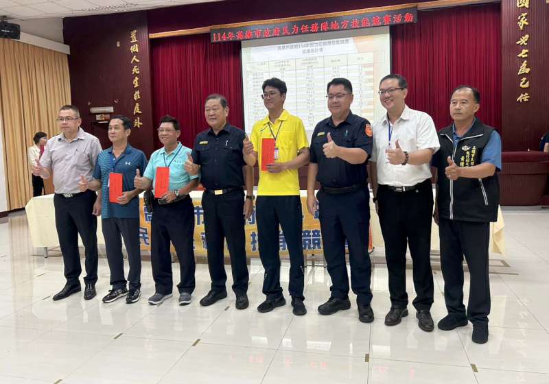 高市警局114年民力任務隊技能賽 小港分局掄元另評選7美技獎 2025/09/24 高培德 9454高市警察局9月23日舉行114年民力任務隊技能競賽,各分局遴選10名民防人員參與心肺復甦術(CPR)、止血帶包紮等項目,市警局主秘戴台㨗主持開幕,經分組較勁,小港分局、鳳山分局、旗山分局分獲前三名,另評選美技獎岡山分局、前鎮分局、林園分局、三民一分局、仁武分局、新興分局,主辦單位感謝民防大隊大隊長謝龍隱、義勇警察大隊大隊長李東和等人贊助支持。圖/市警局提供、文/高培德 #市警局 #高雄捷運報 #高雄在地媒體 #高雄新聞 #鮮新聞 #高雄新聞網