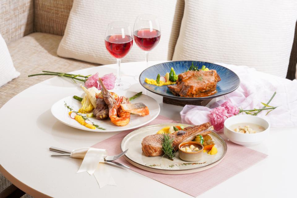 ▲Cozzi THE Roof餐廳於5月10日、5月11日推出主廚精選料理,包括「瑪莎蔓咖哩燉煮台塑牛小排」、「臺灣黑豬帶骨里肌佐蘋果醬」等多款主餐供選擇,每人650元起。