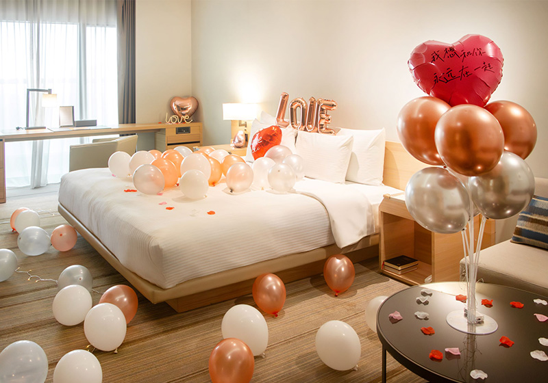 坐擁城市風貌、盡收高空美景的景隅客房,最受情侶青睞!和逸飯店·高雄中山館搭配西洋情人節規劃「只想和你逸起一生一世」住房活動,即日起至2月28日預訂任一專案之「景隅客房」加購1314元,即可享「浪漫布置」1組,房內陳列多款氣球、燈飾等氛圍道具,為摯愛準備別具意義的驚喜,傳達美好情意。