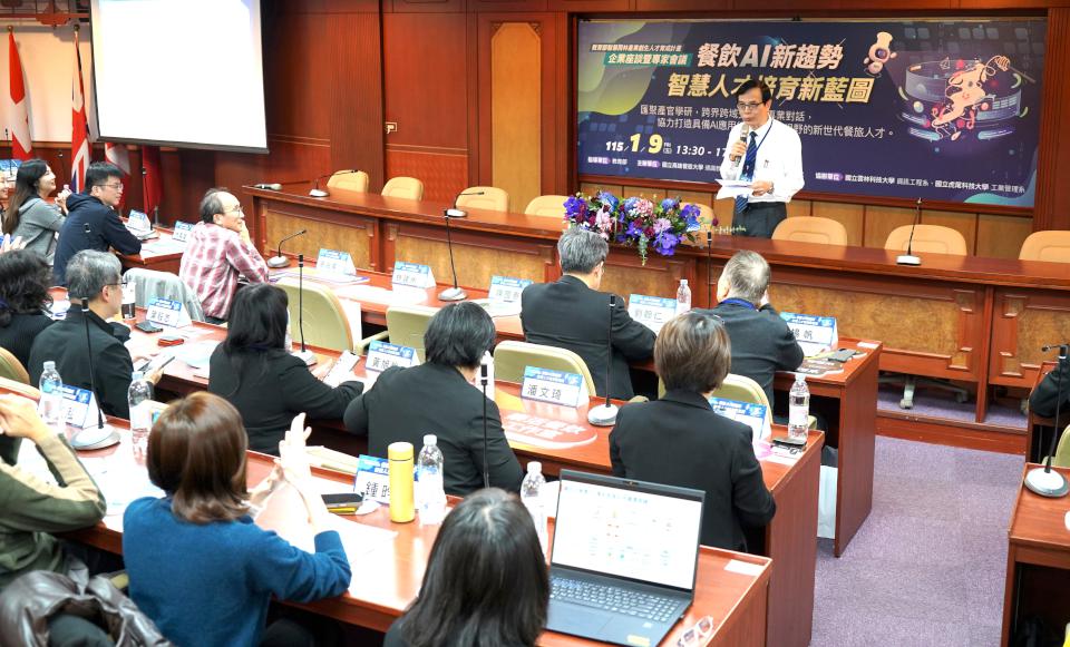 國立高雄餐旅大學主辦、雲林科技大學、虎尾科技大學協辦「餐飲 AI 新趨勢 X 智慧人才培育新藍圖」企業座談暨專家會議1月9日舉行,探討透過人工智慧(AI)科技重塑產業生態,減少營運成本,提升顧客黏著度,培育餐旅產業需用跨域人才。高餐大代理校長陳國泰說,期能透過跨域跨界交流,促進產學合作與資源鏈結,因應全球數位變革,學校持續挹注資源,培育兼具科技素養及服務專業人才。