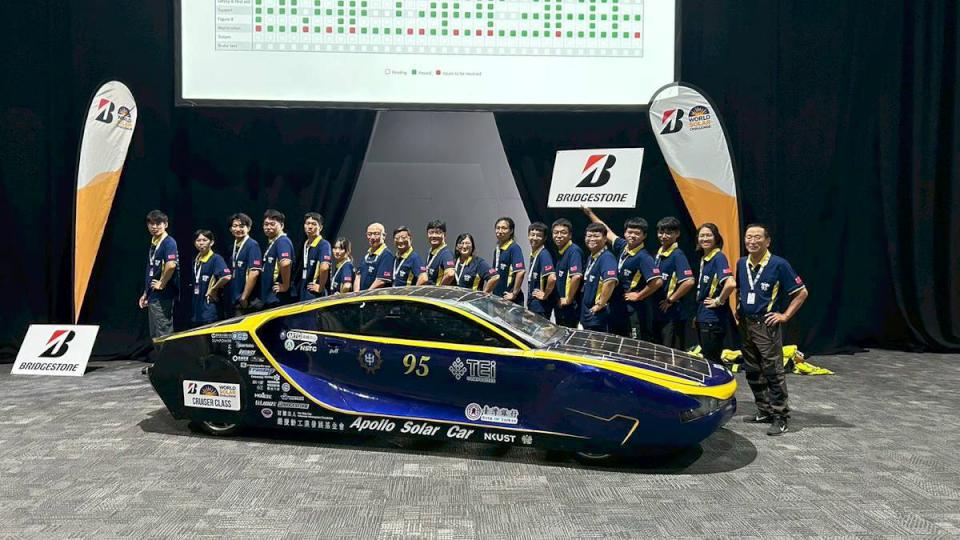 日本普利司通冠名贊助2025年第17屆世界太陽能車挑戰賽(Bridgestone World Solar Challenge) 8月24日至29日首次移師澳洲舉行,日本、韓國等18國37支車隊同場競技,國立高雄科技大學模具系教授艾和昌、車隊經理、國際企業系助理教授廖明瑜領軍成軍27年阿波羅太陽能車隊,從達爾文市出發,貫穿澳洲大陸直達南端阿得雷德 (Adelaide)全程3000公里,歷經強風、大雨、冰雹等挑戰,拿下巡洋艦級(Cruiser Class)組第四名,艾和昌說,車隊曾榮獲2023 年公路第四名、全球實用性第二名,阿波羅9號車 (Apollo IX) 改款升級,增長30公分及加大太陽電池模組鋪設面積。圖/高科大提供、文/高培德