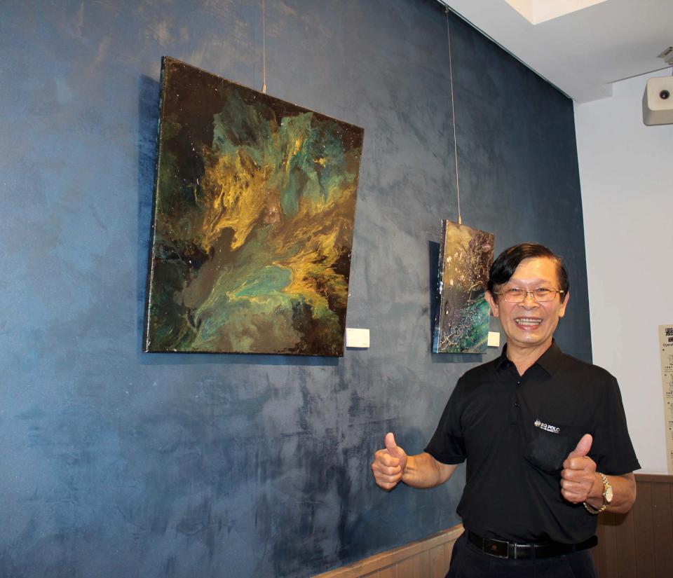 高市新思惟人文空間「觀自在—郭日榮個展」10月2日至12月14日週二至週日上午11點點至晚上9點在帕莎蒂娜青海餐廳邀賞,精選使用壓克力顏料創作2023年媽祖金身開光引路、2024年大地之河等20件流體畫,帕莎蒂娜國際餐飲集團董事長許正吉、郭日榮等人參與10月2日開幕茶會,郭日榮導覽解說作品,他說,透過傾倒、旋轉、吹散顏料,堆疊意想不到紋理及畫面,創作過程隨興自由,畫中充滿開闊喜悅心情,作品無法複製,感受生命律動。展覽洽詢(07)3452699。圖與文/高培德