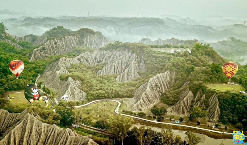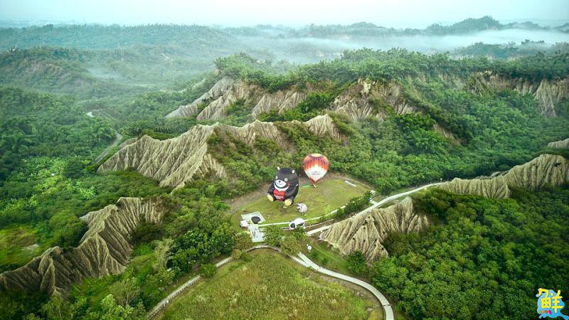 ▲熱氣球映襯田寮月世界惡地地形,宛如置身土耳其卡帕多奇亞。