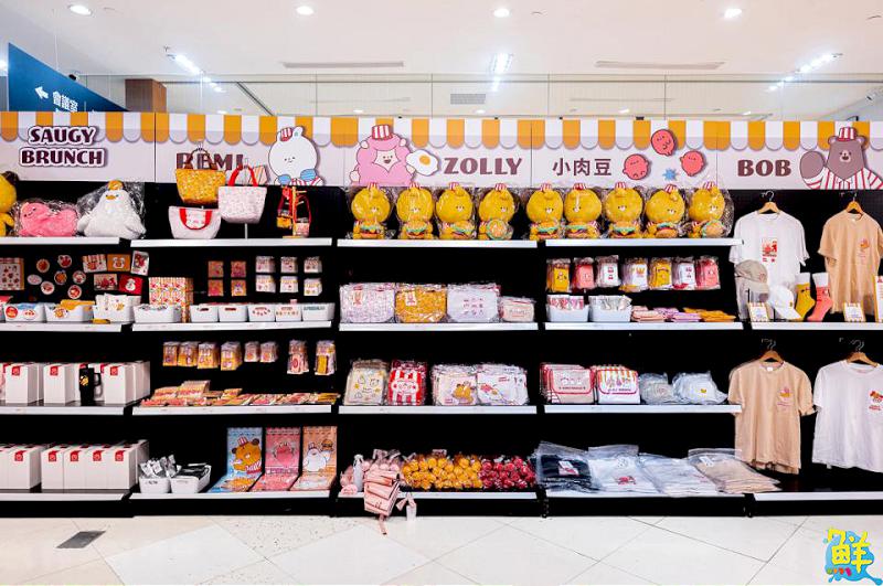 此次快閃店除了深受大家喜愛的 Saugy 腸太郎、Hoya 好鴨跟 Dinu 狗狗會現身外,更首次亮相全新角色「小肉豆」,將以 Saugy 腸太郎主廚最得力的料理小幫手身份驚喜登場!超過30款全新週邊本次搶先亮相,包含各種玩偶、生活雜貨與收藏品項,餐點造型、早餐盒包裝超吸睛!絨毛飲料提袋、遇水變色的折疊傘、拍拍尺、絨毛徽章盲抽等眾多商品,數量有限,粉絲們請手刀搶購!