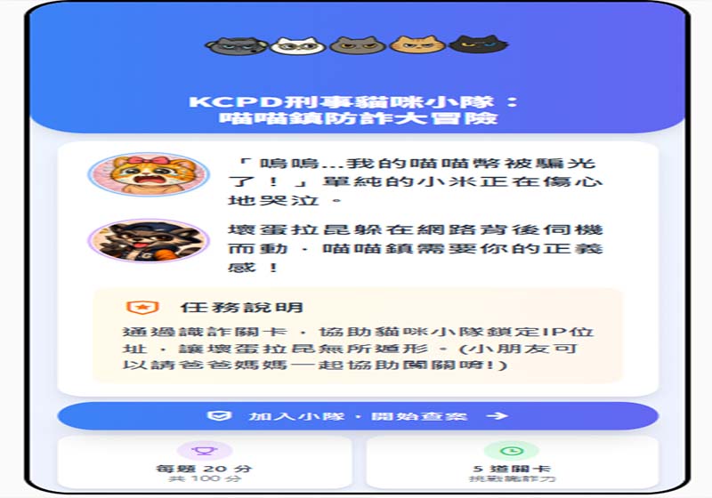 高市警局刑大刑事貓咪小隊新推互動測驗 5道情境式選擇題強化識詐