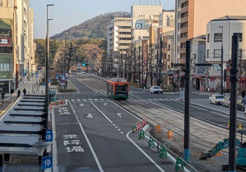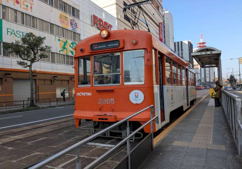 我上的是一輛舊式的車輛,車內的一切非常昭和風格,緩慢的行駛在馬路中間,才過沒幾站,廣播說下一站是「大街道站」,看不少旅人準備下車,我也自然的跟著下車。