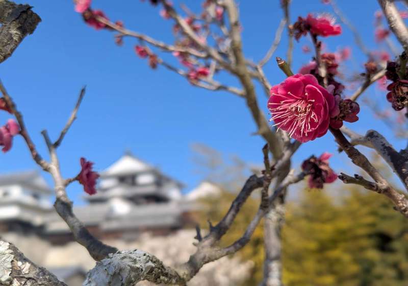 我興奮地往前快走,為的不是進入城堡參觀,而是一大片空地裡的幾棵梅花樹。