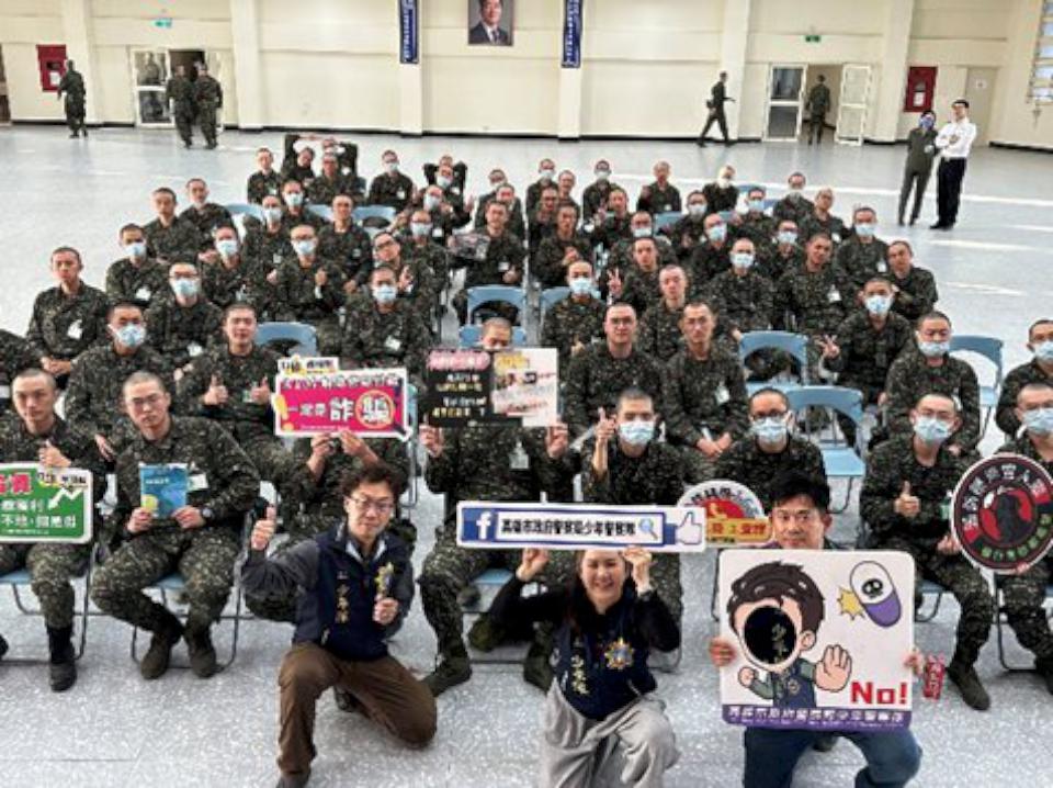 高市警察局少年警察隊受邀國防部南部地區法律服務中心結合中國信託反毒教育基金會前進海軍新兵訓練中心,透過實例說明穿插有獎徵答宣導反毒、防詐,少年隊表示,多數新兵初入社會,易受同儕壓力及好奇誤食新興毒品,進一步淪為詐騙集團犯罪工具,宣導介紹仿真毒品樣態及解析詐騙話術,也提醒俗稱喪屍菸彈新興毒品依托咪酯偽裝電子菸,吸入可增加快感但會成癮,根據菸害防制法規定,製造、輸入、販賣、供應、展示、廣告電子煙可處2000元至1000萬元罰鍰,少年隊隊長陳仁正說,反毒與防詐扮演社會安全網關鍵角色,期盼透過宣導,加深官士兵識毒防詐觀念,並鼓勵善用反詐騙專線165 及110通報查證。圖/少年隊提供、文/高培德