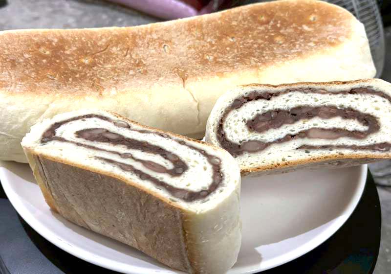 ▲紅豆硬大餅,長條狀的大餅包覆紅豆與花豆煮成的餡料,香濃可口,讓人一口接一口!