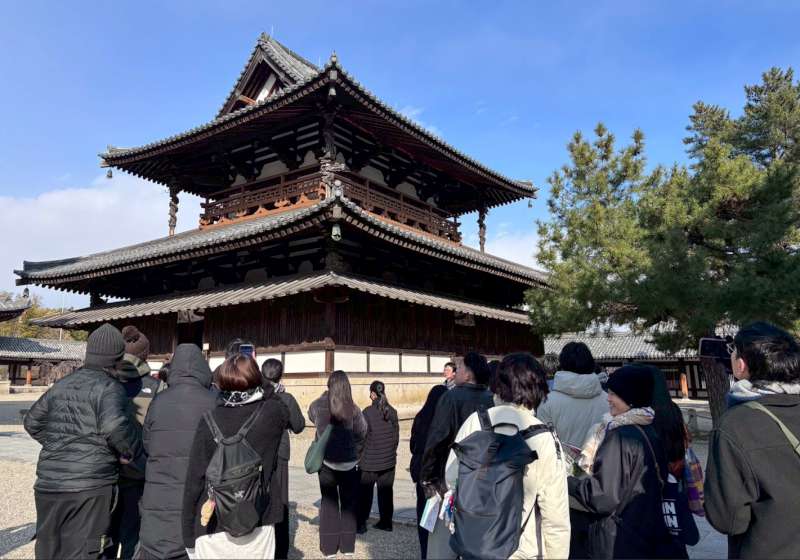 營隊同步安排台日教授分享木造建築史、構造技術與文化背景,並走訪奈良縣傳統木造建築與文化資產,引導學生觀察梁柱尺度、榫卯接合與空間秩序,從材料、構造與文化脈絡等面向認識木造建築歷史價值。圖/高大提供、文/高培德