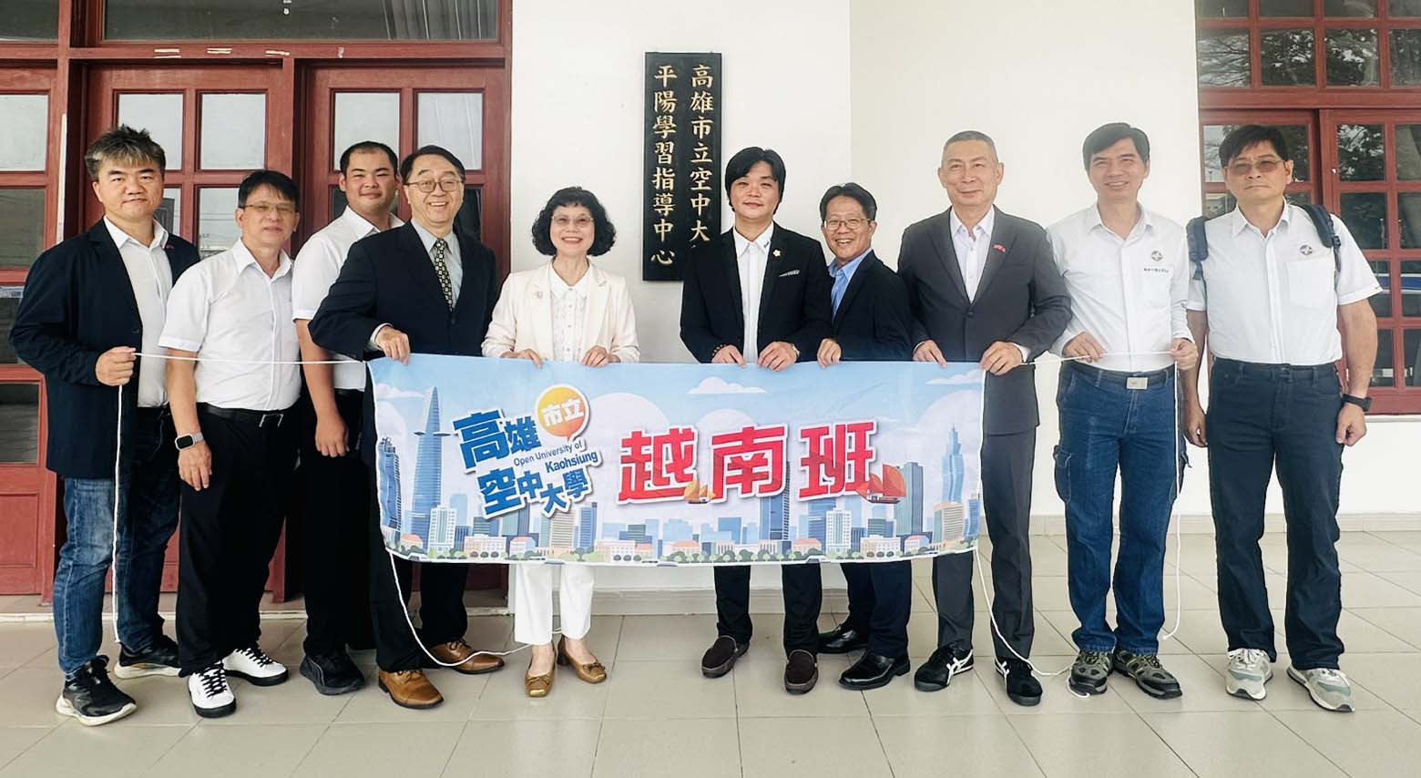 高市空中大學校長陳月端3月21日率團拜會越南平陽台灣商會,與副會長陳靜璿、秘書長鄧博文等人交流人才培育、教育資源導入、產學合作等議題,陳月端說,行程傾聽需求、對接資源,期能從平陽出發,拓展境外學習據點,引進專業師資及教學資源貼近在地。就讀高空大工商管理系陳靜璿說,遠距教學彈性進修,兼顧工作與學習。