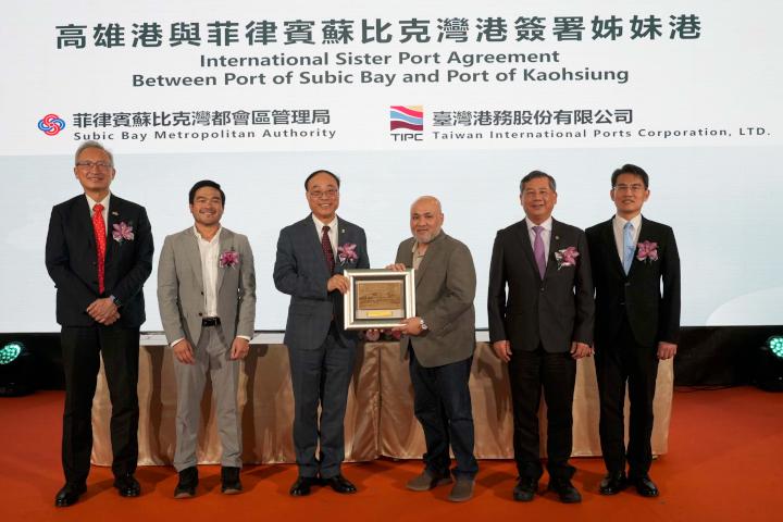 臺灣港務「駿馬奔騰賀新春」14週年慶活動2月25日在高雄港旅運中心舉行,外交部政務次長吳志中(圖一左四)、交通部航政司司長韓振華(圖一右三)、高雄市長陳其邁(圖一左五)、臺灣港務董事長周永暉(圖一右四)、總經理王錦榮(圖一左一)交通部航港局副局長陳賓權(圖一右一)、高市府秘書長郭添貴(圖一左三)、海洋委員會常務副主委吳欣修(圖一右二)、立委林倩綺(圖一左二)等人參與新春團拜,並見證高雄港與菲律賓蘇比克灣港締結姊妹關係,高群裝卸董事長王武雄獲頒金舫獎港埠特別貢獻獎,陳其邁說,因應全球劇變挑戰,市府續攜手臺灣港務合推數位轉型與永續經營,期能帶動港市發展。