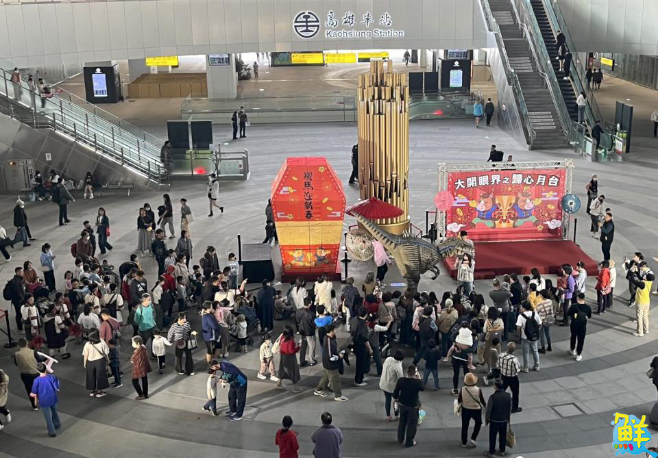 ▲高雄車站「新高埕」打造大型裝置藝術,親子互動滿分,邀民眾來高雄共享專屬年節走春