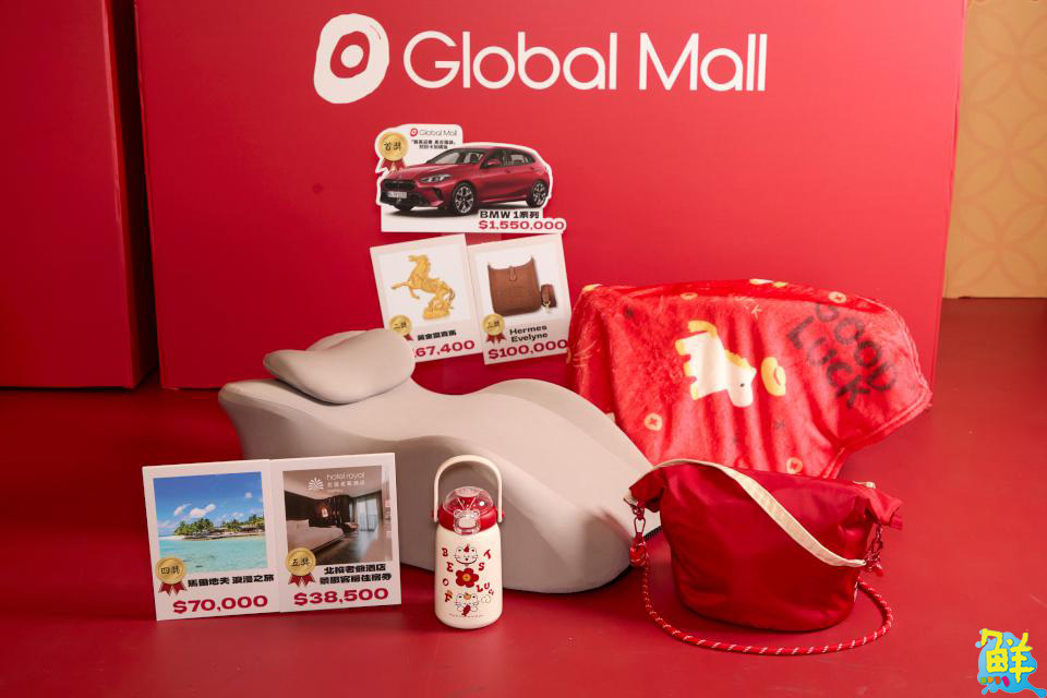 Global Mall「馬吉福袋」強勢登場,最大獎抽BMW百萬名車,集結馬年黃金、精品包、馬爾地夫豪華行及北投老爺酒店住宿券等5大豪華獎項。Global Mall新左營車站獨家加碼驚喜三重抽,開袋人人有獎,還有機會抽北投老爺酒店湯屋券;同時推出指定零售櫃位滿額優惠,多款服飾、鞋款與包款最低7折起,讓旅客走春採購、換季添新衣一次到位。