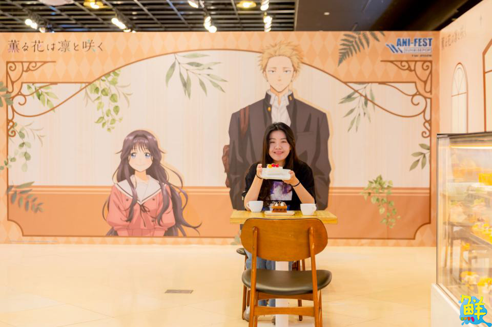 ▲《薰香花朵凜然綻放》的浪漫甜點店場景,讓粉絲彷彿走進動畫世界之中。(圖/夢時代提供)