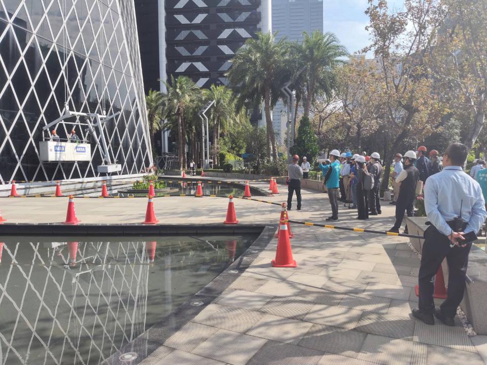 高市勞工局外牆清洗作業安全觀摩宣導會2月5日在前鎮區中鋼總部大樓舉行,演練吊籠清洗標準作業程序,勞工局副局長皮忠謀、勞動檢查處處長郭清吉等人觀摩提問,期能透過操作說明,提供事業單位參考遵循,維護勞工作業安全。勞工局表示,歲末年終掃除旺季,潛藏墜落、物體飛落、感電、跌倒、中毒缺氧等安全風險,事前擬定作業計畫並落實標準作業程序,降低工安意外發生。