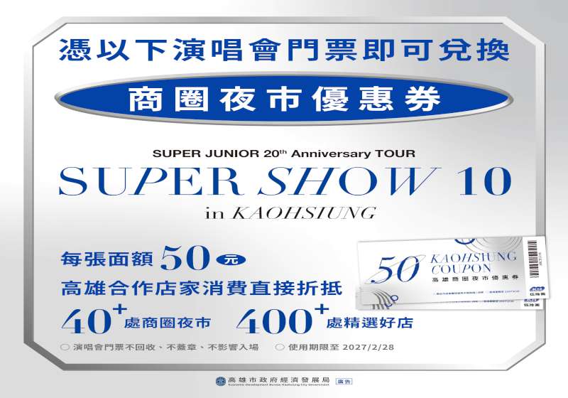 韓國傳奇灶咖男團SUPER JUNIOR巡演高雄巨蛋 經發局續發行商圈夜市優惠券應援