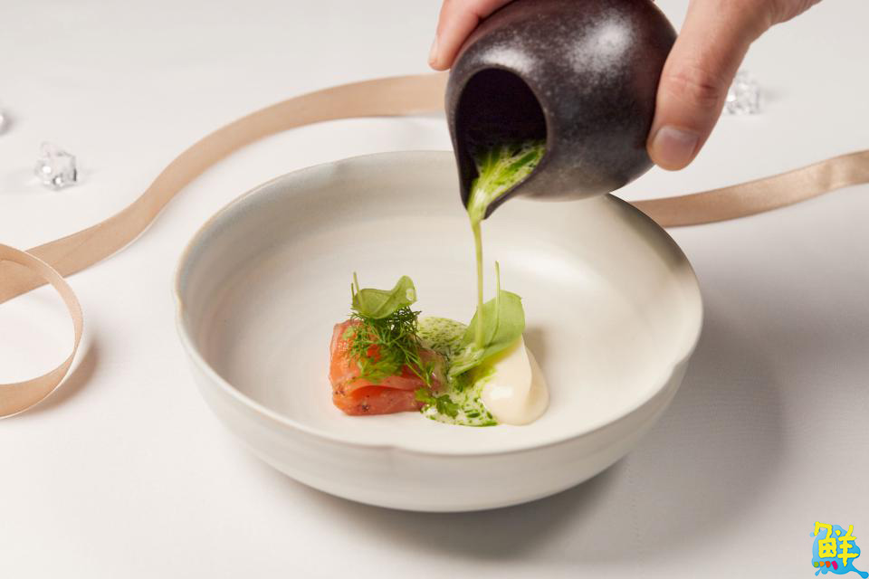 ▲以鮮嫩鮭魚搭配微苦菊苣及帶有檸檬清香的酸模,在齒頰中形成完美的平衡。