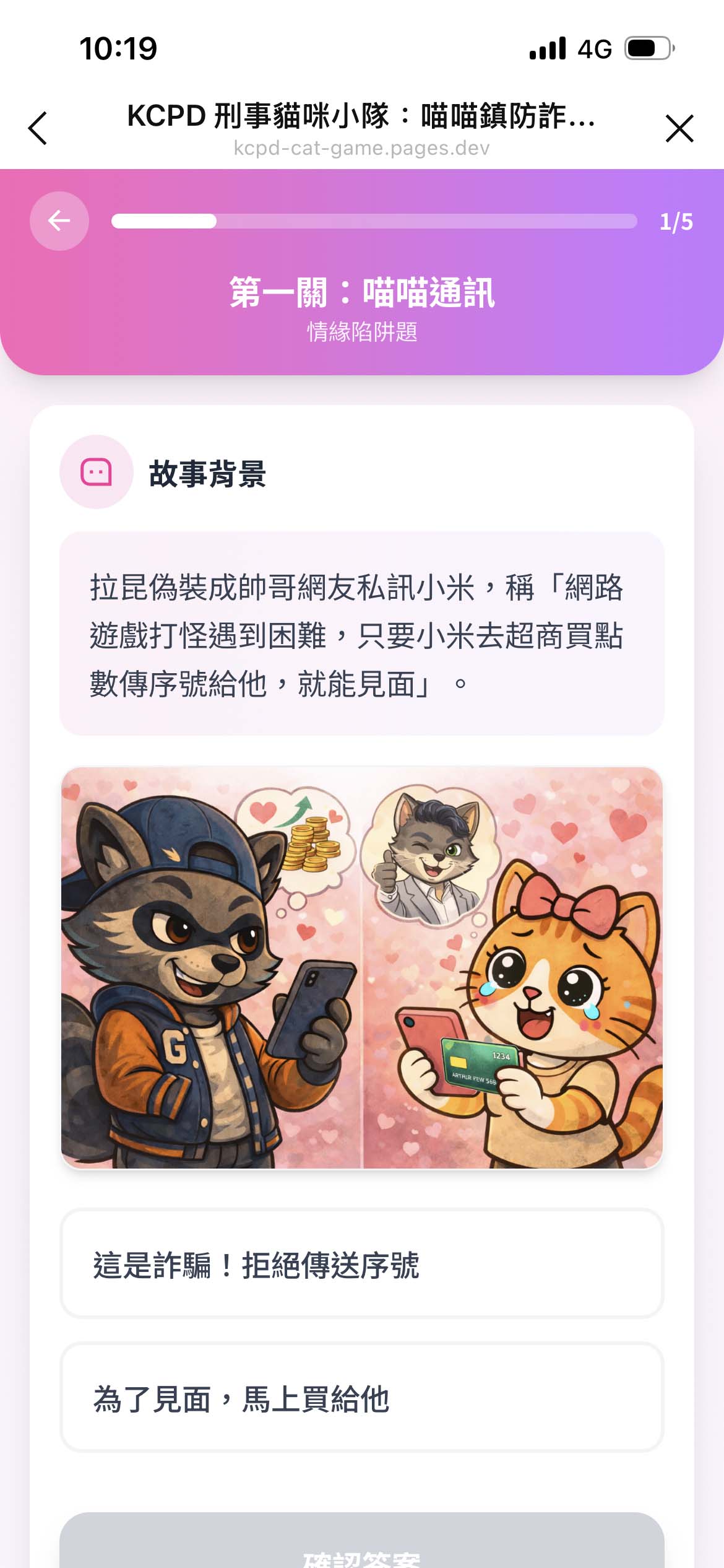 高市警局刑大刑事貓咪小隊新推互動測驗 5道情境式選擇題強化識詐