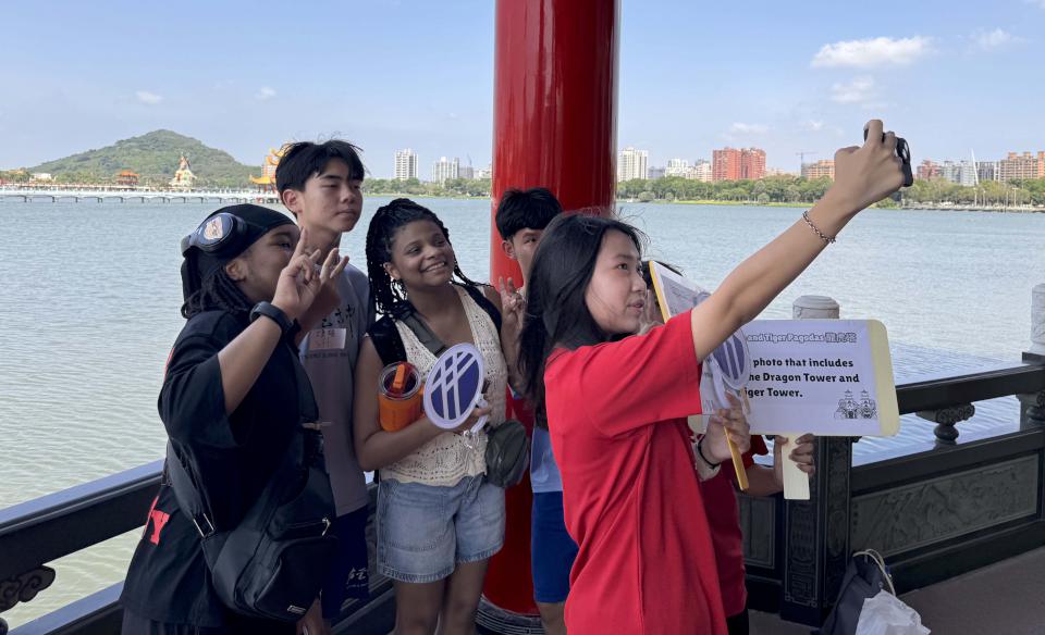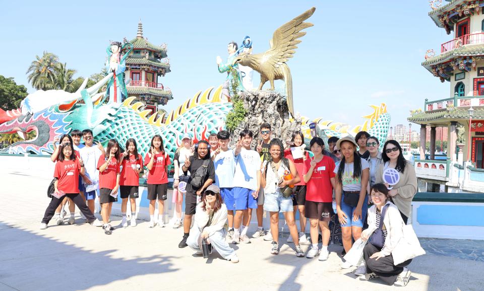 左中學生也帶領美方踏訪蓮池潭風景區周邊廟宇,結合趣味闖關認識道教抽籤與擲筊文化,理解龍口進虎口出意涵,也在老宅改建日式咖啡館品嘗銅鑼燒,續移師美濃與旗山等地,搗麻糬體驗客家文化,旗山老街從香蕉加工食品認識在地產業特色,彌陀漁港食魚教育認識蝦類生態並參與淨灘,體現環境保護。