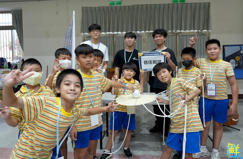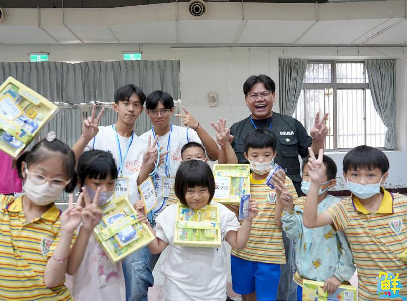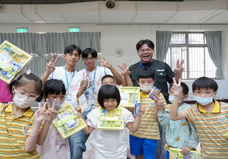 ▲活動結束後孩童開心與大學生合影