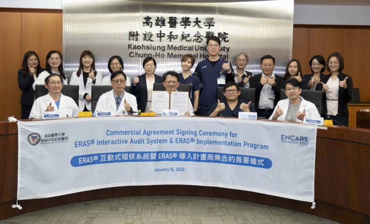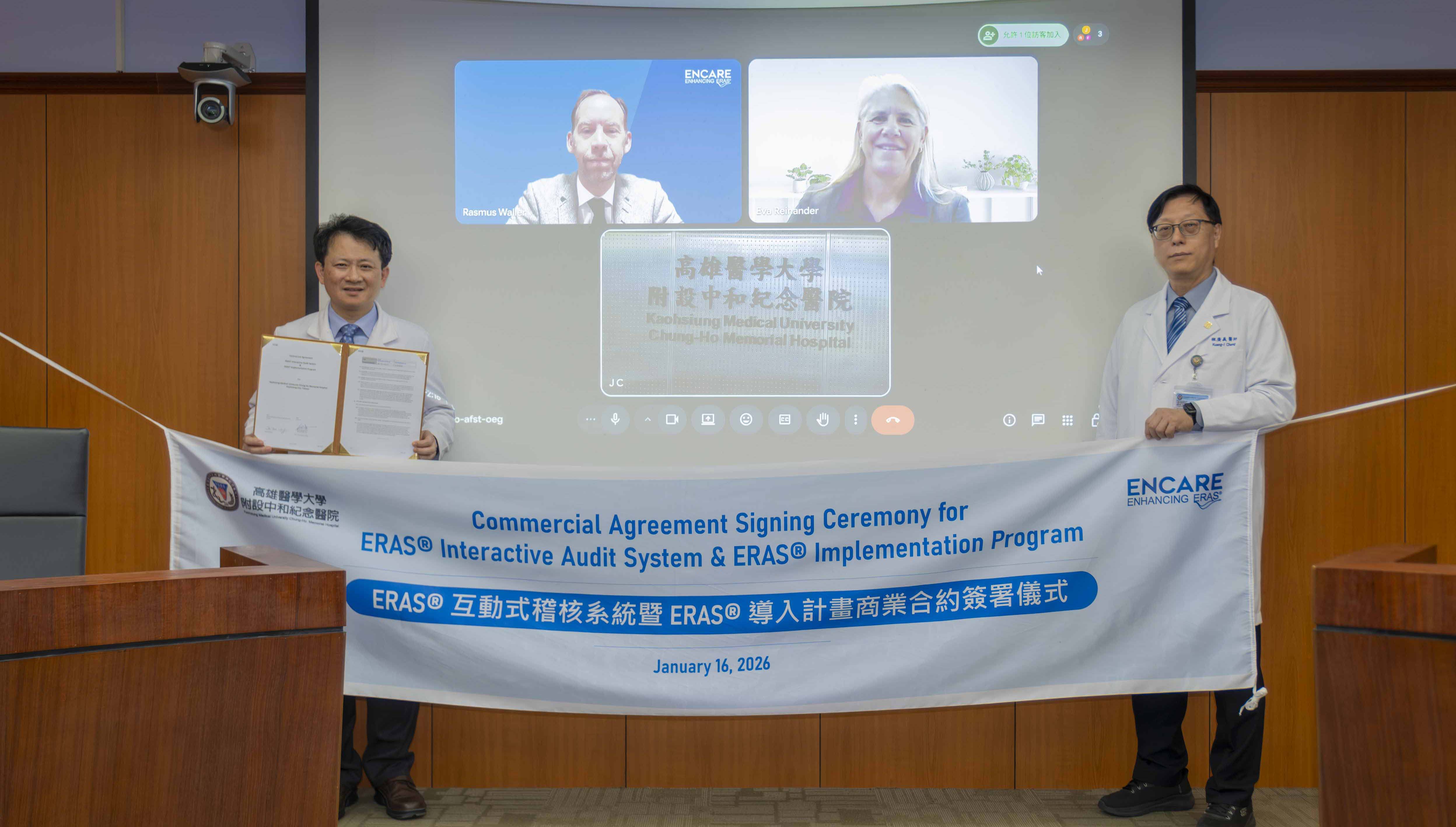 高醫2021年推動術後加速康復照護方案,迄今完成603例手術,臨床顯示降低術後併發症約 50%,平均住院天數縮短約30%,高醫院長王照元1月16日領先南台灣與瑞典健康科技Encare執行長 Rasmus Waller簽約,合推術後加速康復互動式稽核系統及導入計畫,持續精進醫療照護品質,樹立國際術後康復照護典範。