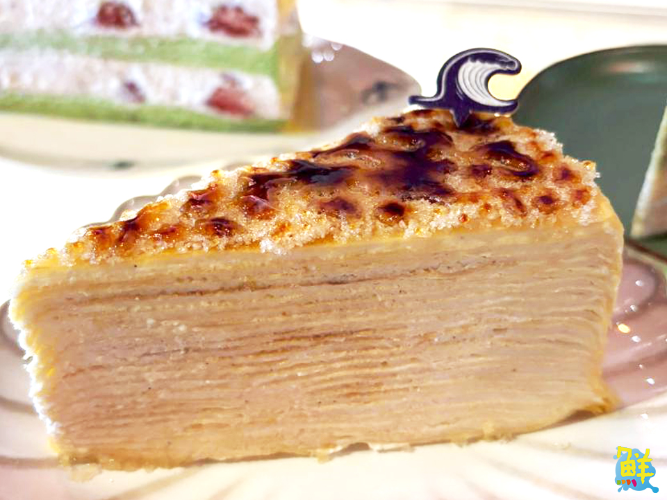 ▲炙布蕾:外層糖粒烤至焦黃微脆,散發迷人焦糖香氣,讓千層蛋糕的口感瞬間升級,層層奶香更誘人。