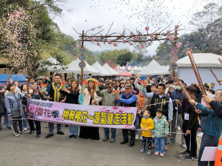 高市桃源區公所115年櫻花季活動1月31日至2月19日在二集團櫻花公園舉行,中央原民會主委室簡任視察陳慧君、高市原民會主委阿布斯、桃源區長杜司偉、高市議員高忠德等人參與開幕式,規劃日夜賞櫻、「桃醉櫻花•源氣健走活動」、桃源現櫻姿攝影比賽、原味市集、音樂舞蹈表演等系列活動,主辦單位表示,花況近7成,邀請大家抽空參與。