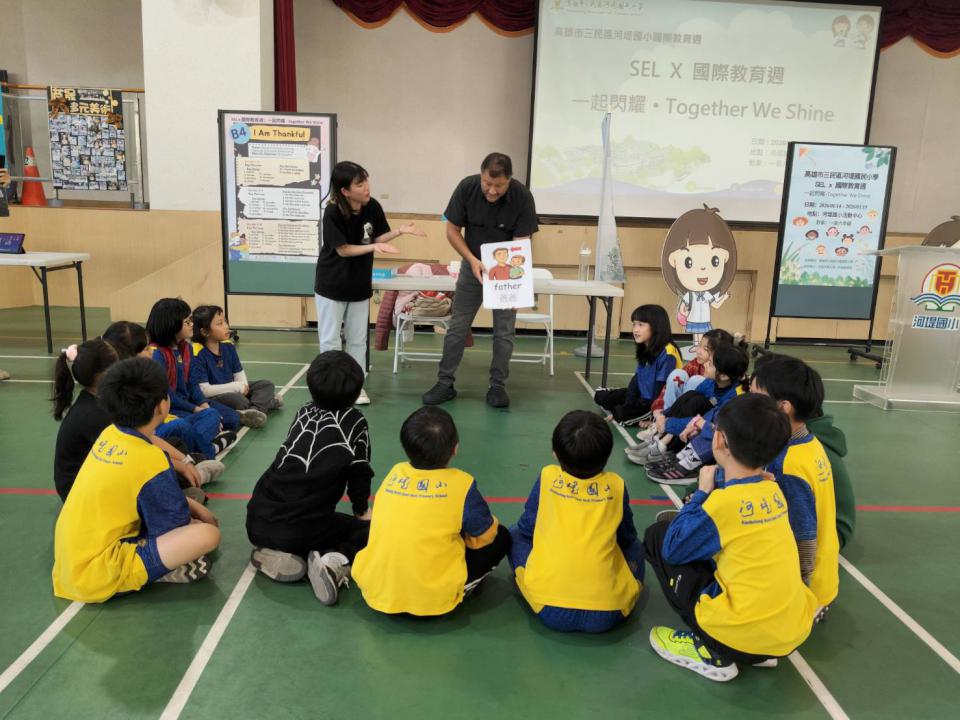 高市三民區河堤國小1月14日辦理「SEL × 國際教育週—一起閃耀(Together We Shine)」活動,導入社會情緒學習(Social Emotional Learning)應用英語課程,設計「友善與否(Kind or Unkind?)」、「情緒猜謎(Emotion Charades)」、「讚美循環(Compliment Circle)」等活動,引導學生學習關懷他人、理解情緒與建立自信,紮根品德教育融入生活,河堤國小校長杜昌霖說,學校重視學生品格發展與身心健康,透過課程結合英語學習與國際教育,培養同理心與自主管理能力,落實做中學、說中學。