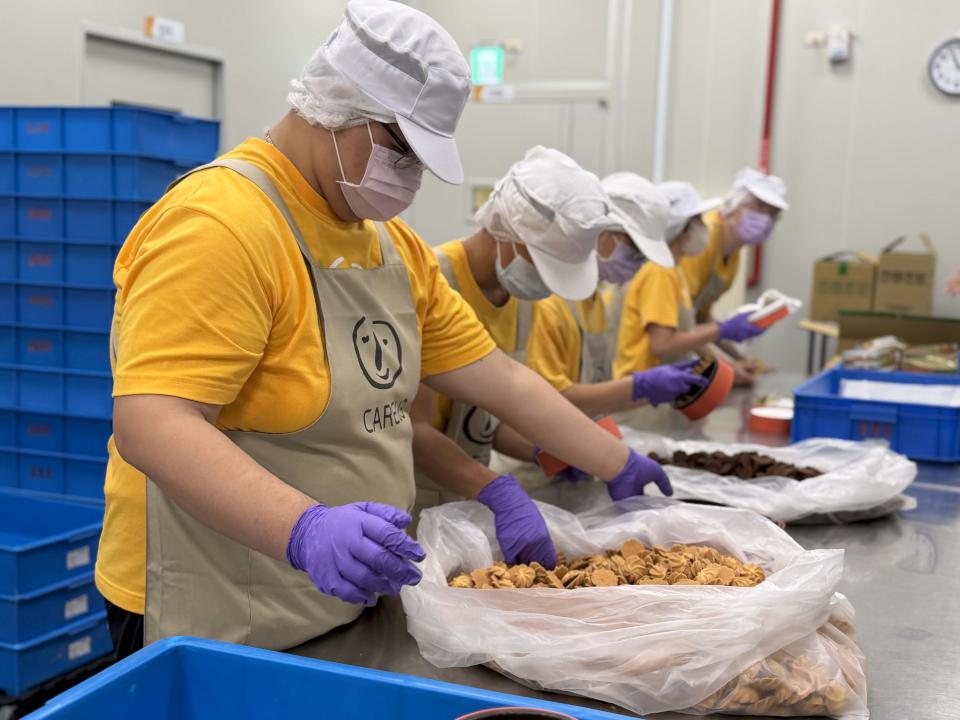 HowHow體驗封條黏貼與禮盒包裝,感受細節工作挑戰性,經憨兒阿宏檢視「不合格」,HowHow說,日常作業需反覆練習及考驗專注力,基金會導入輔具與職務再設計,分解繁複流程及優化動線,結合適切工具降低操作門檻,同時引進專業機具營造安全友善職場,提升工作效率及預防職業傷害,高雄、台南、台北與新竹等地庇護工場通過ISO22000、HACCP等國際認證,持續精進訓練品質,把關品質安全。
