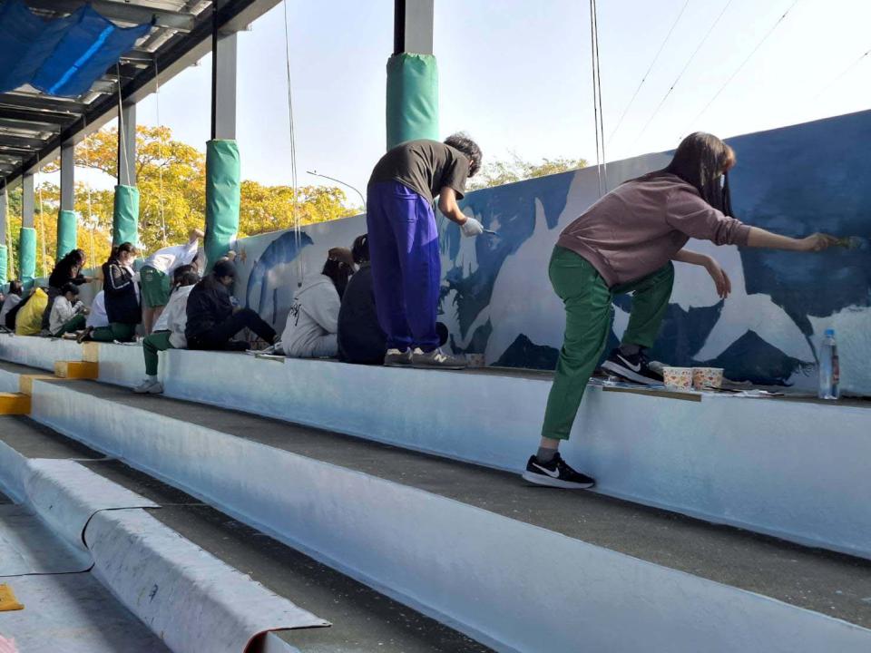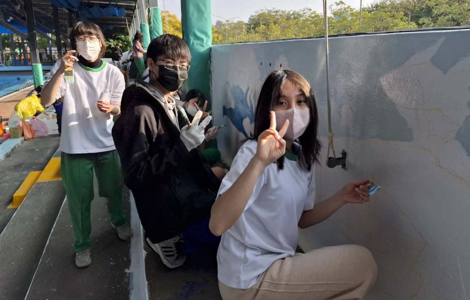 鼓山高中美術資優班成立20週年,持續深耕藝術教育,校友攜手學弟妹彩繪鼓山泳池,體現社區服務精神。